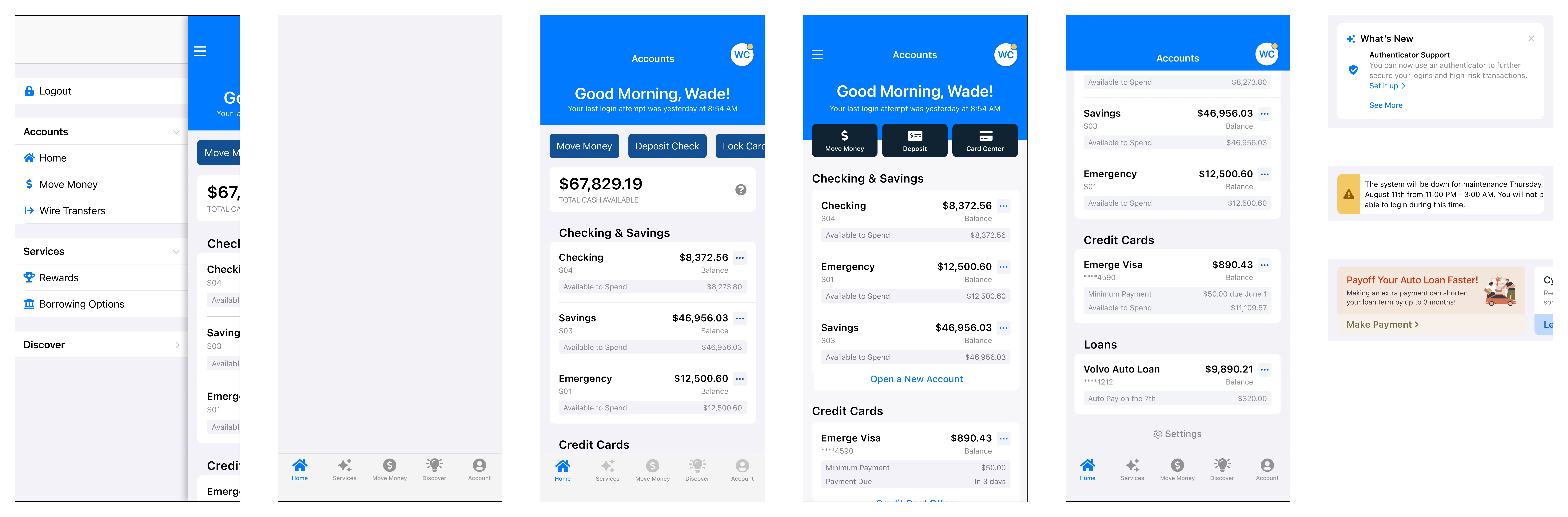 I embarked on a journey to redesign two of the most important and most trafficked screens in the app. In addition to redesigning these screens, Connect wanted to plan for the integration of new features. Connect had acquired an AI marketing and budgeting product that they wanted to integrated into transaction history, and they recently finished development of a new feature called Move Money, which combines the capabilities of features like transfers, bill pay, and person payments.